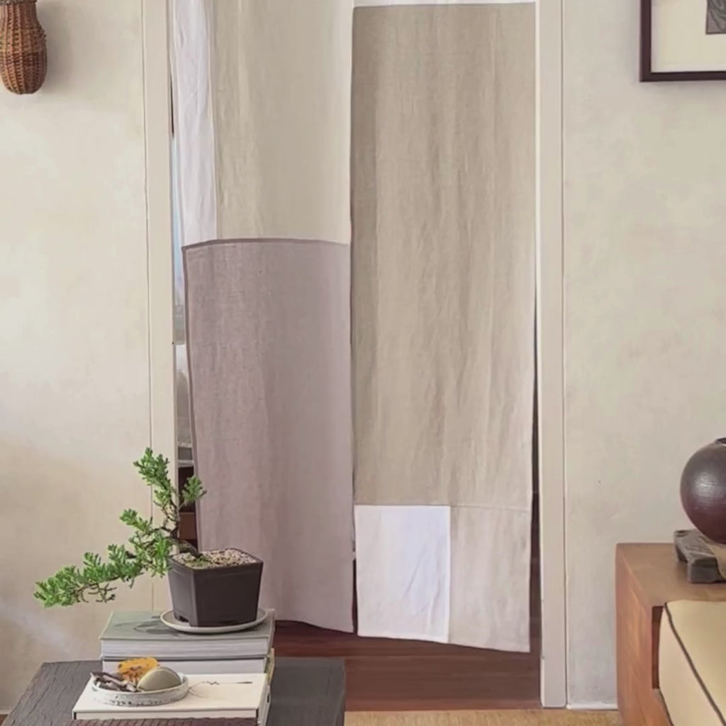 This Noren curtain is 1 of only 4. Made from IN BED European linen in Natural, Dove Grey & White linen and Off-White heavy linen. Upcycled fabrics have been patch-worked together with French seams, complete with a small IN BED label. Best suited as a door curtain.
